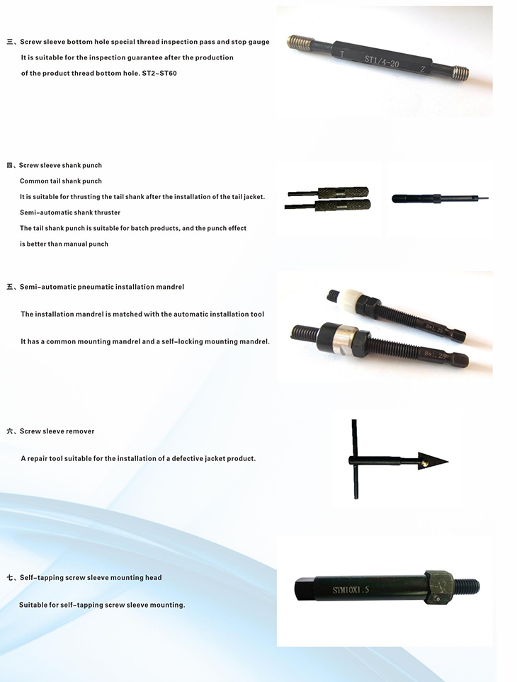 Thread sheath (unified self-locking type tailless) number comparison table: