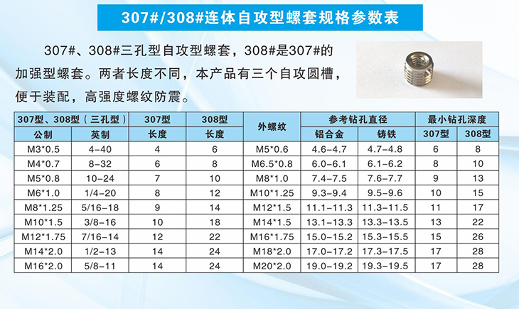 KEREGO 美制(UNF细纹)螺纹护套规格表:(1)